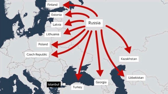 Large crowds have been seen at the borders of neighbouring countries of Georgia and Finland
