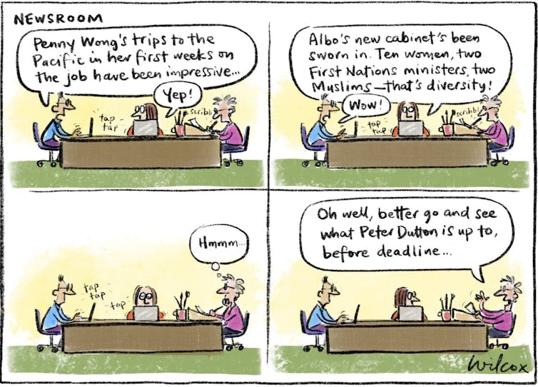 Cathy Wilcox, for one, suspended judgement of the new government for a honeymoon moment, and instead turned her ire on the broader media, which seem utterly at a loss without the Coalition: