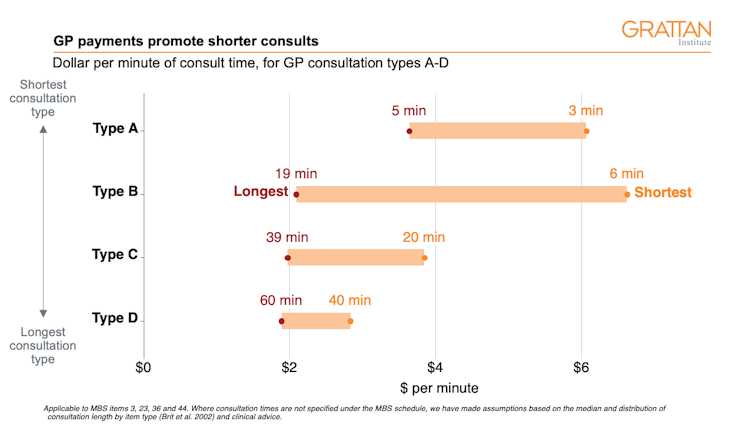 Australia is one of a small and shrinking list of countries that still mostly uses fee-for-service funding. There are payments to make care plans, and for working to improve quality measures (such as measuring risk factors or increasing immunisation rates), but the vast bulk still goes on individual GP consultations.