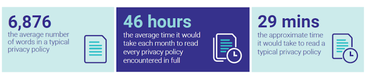 Attempting to read every privacy term is near impossible. The ACCC referred to a recent study that found it would take consumers over 46 hours a month to read every privacy policy they encounter.